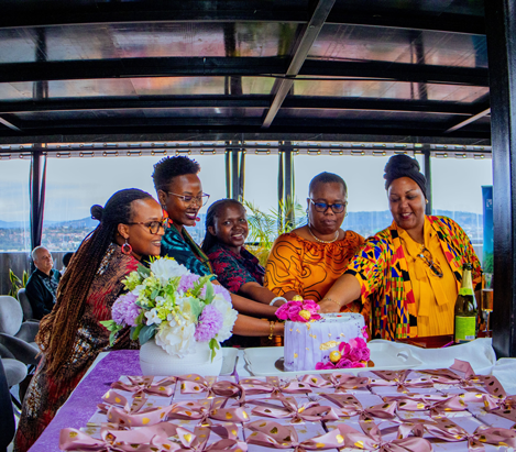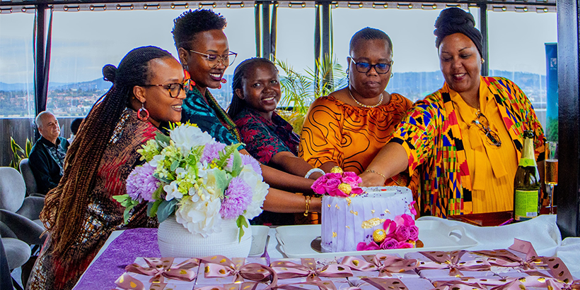 (from left to right) Solange Zawadi, IFPRI Rwanda; Dr Solange Uwituze, Minister of State in the Ministry of Agriculture and Animal Resources in Rwanda; Hyacinthe Nyirahabimana, CIP Rwanda; Justine Umutoni, Alliance of Bioversity International and CIAT; and Justine Mucyo, IITA Rwanda.